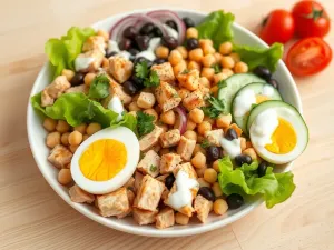 • 80 g ugotowanej lub grillowanej piersi z kurczaka pokrojonej w kostkę